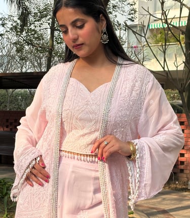 Each chikankari piece is lovingly handcrafted, blending royal Indian heritage with modern minimal luxury.